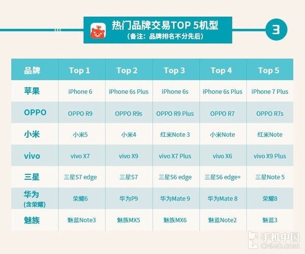 转转数据显示,5月二手手机市场TOP10品牌依次为:苹果、OPPO、小米、vivo、三星、华为、魅族、乐视、酷派和诺基亚,从3月份到5月份,苹果已经连续三个月坐稳冠军宝座,而且有着绝对的优势。