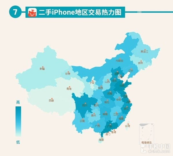 在很多人的印象中,买二手手机只是为了图便宜。但是根据我们从转转得到的数据,3月份到5月份二手手机地区交易量排名前列的,基本都是经济相对发达的省份。