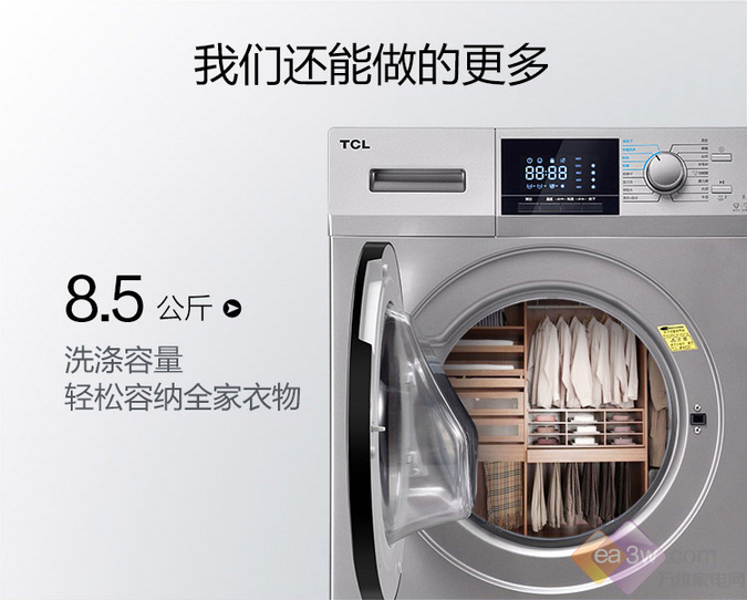 当然了就算是看似如此简单的清洁方式,很多小伙伴们依旧会是懒得我行我素,过几天就忘记了清洁洗衣机的事情,而且,如果经常使用清洁剂进行清洗的话,会对洗衣机造成一定的腐蚀,影响寿命。小编在这里为大家推荐一款真正“免污”的洗衣机——TCL XQGM85-F14303DS,8.5公斤免污式滚筒双变频洗衣机,在这里吐槽一下它的名字简直是太长了。