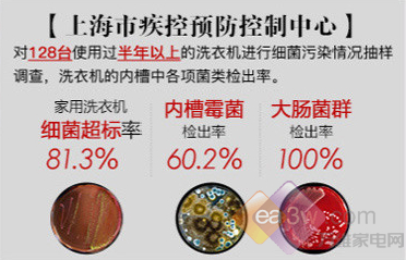 根据抽样调查,洗衣机内部的细菌总数的超标率为81.3%,大肠菌群的检出率为100%,真菌的超标率为45.8%,霉菌超标率为60.2%,有的还检出绿脓杆菌等致病菌,这些看似十分瘆人的数据很可能就发生在我们的日常生活当中。