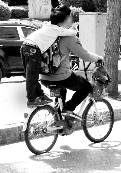发现 共享单车“花式载人” 挡泥板当“后座”