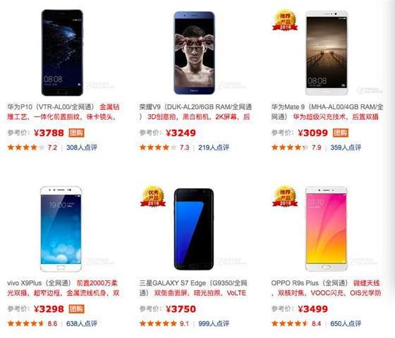 在同时间段,3000-4000元中间价位的手机,随便搜一搜就有很多不错的品牌和机型。可以看到华为的P10,Mate9,荣耀V9,vivo X9Plus,三星S7,OPPO R9s Plus,这些都是差不多价位的手机。不管是从品牌知名度和机型成熟度,配置还是工业设计,都全方位的“吊打”至今只出了3部手机,整体来说还不成熟的格力手机。