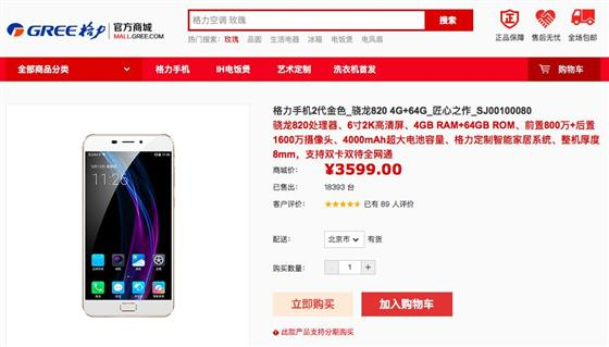 于斌到格力的官网上围观了一下,这部手机的金色版截止到发稿前官网显示售出不到2万部,客户评价数量只有89个。而价格即使在半年之后,即使在整个网络都铺天盖地在进行618年中大促的情况下,仍然坚挺的保持在3599元一动不动,简直比苹果手机还保值。