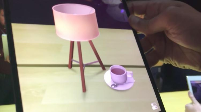 除了摆脱了纸书的要求外,苹果公司的 ARKit 还强调在实际环境的光影效果。在 WWDC 大会的 ARKit 演示区,用户可以拿着 iPad 在桌面上摆放一盏台灯的 3D 模型,台灯上也会有配合着演示区的光线有阴影变化。同时,用户也可以开启台灯,照射出来的光线对周边的物体也带来了阴影。总之是让产品在增强现实环境下看起来更真实。