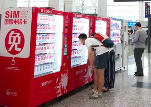 看点 2 创新渠道 >> 机场贩售机,买卡就像买可乐