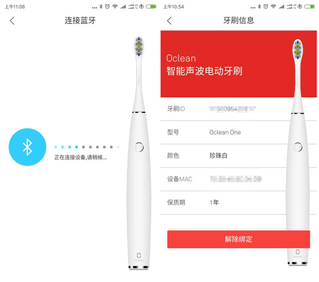 消费者越来越愿意把身边更多的电器和智能手机做关联,而这款Oclean智能声波电动牙刷同样也支持APP,链接过程比较简单,打开手机蓝牙,打开牙刷,APP点击链接即可完成链接。链接成功后可以查看牙刷的详细信息。