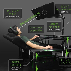 用户在使用的时候,不仅可以半躺着来操作,放键盘和鼠标台面的高度也能随意调节,找到最舒服的姿势,还能将屏幕调整到最适合观看的角度和距离。