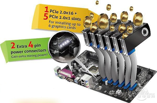 除此之外,主板厂商也盯上这个市场了,华擎、七彩虹、映泰等厂商针对挖矿推出了可支持多张显卡的专用主板,现在也是供不应求。