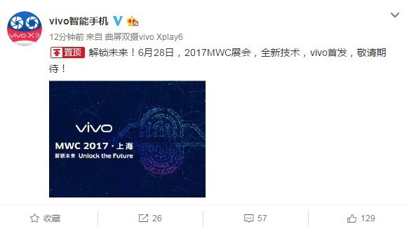今天上午,vivo带来了一条重磅消息。vivo官方发布了一张有关上海MWC 2017的海报,暗示将首发隐形指纹技术。从海报的内容来看,vivo这次在MWC上发布的将会是一项与指纹解锁相关的技术。海报中右侧的图案类似将指纹嵌入了一款全面屏手机,而在MWC 2017·上海,vivo还使用“解锁未来”的口号,再一次指明了vivo的新技术与指纹相关。