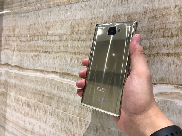 从真机照上来看,大象S8采用了全面屏设计,黑边控制还算在可接受范围内,由于额头部分太窄,前置摄像头被安置在右下方。机身背部采用了镜面设计,照片中的应该是金色,此外该机还提供黑色和蓝色。