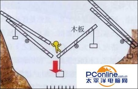 连环翻板主要是为了弥补自动连弩的不足,也是和自动连弩相互配合的,连环翻板是一种陷坑陷阱,坑底放有尖刀利器。坑上层平覆数块木板,木板中间有轴,下缀一相同重量的小型物体,呈天平秤状,板上有掩盖物。你看着不会发现有什么异样,但是一走你就会掉下去,而且这种连环翻板,可以重复使用。