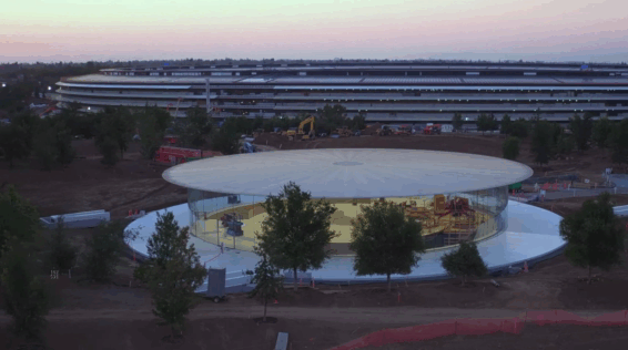 苹果新总部航拍新照:“乔布斯礼堂”主体封顶