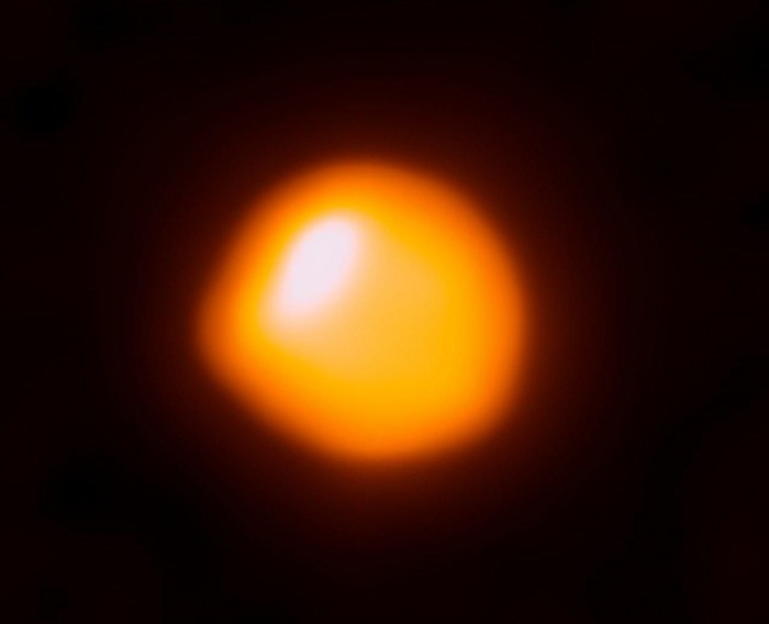 该图像中,突出显示了参宿四的炽热气体外延,红超巨星的炽热高温令其看上去像是橘红色斑点。尽管这颗红超巨星只有800万年的年龄,已经处在形成超新星爆炸的边缘,它是夜空中除太阳外第十亮的恒星,辐射强度高出我们的太阳约1400倍,如果爆炸发生或许将对太阳系和地球产生一定的影响。