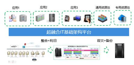 最终目标是借助超融合的力量,帮助用户实现信息基础架构平台的统一建设和优化,以超融合作为未来架构标准,为不同类型的应用提供不同类型、级别的服务。该平台能够整合用户IT环境,提供统一的管理功能和数据保护功能,并且在建设过程中,充分考虑用户已有的投资,可以对部分软硬件进行利旧。