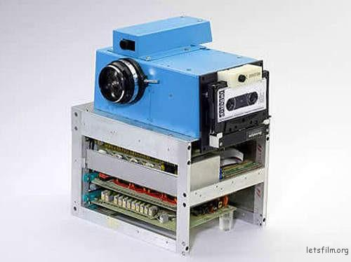 这台数码相机使用磁带作为存储介质,拥有最高1万像素的CCD黑白感光元件,拍完一张照片,写入数据的时间就要长达23秒。拍好以后需要把磁带拿下来,拿到播放设备上才能够现实照片。