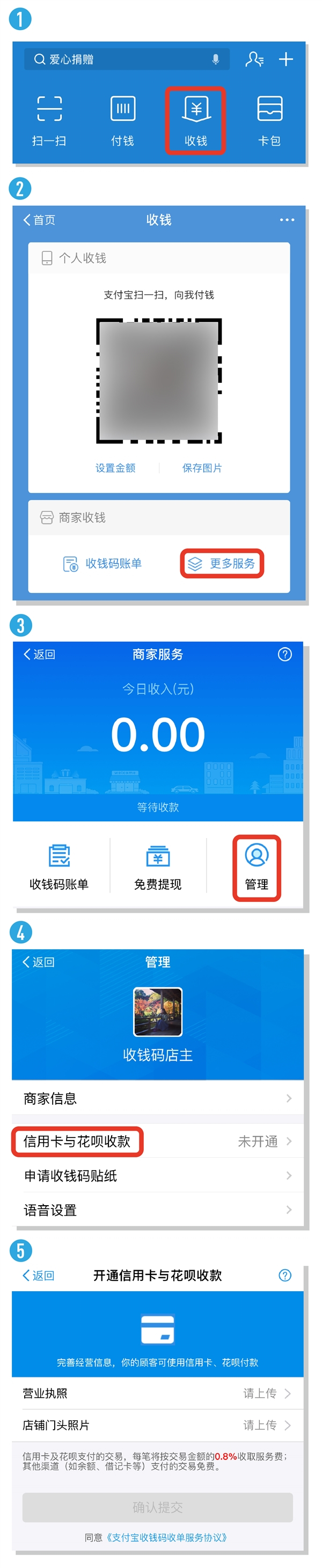 据介绍,商家开通接受花呗收款的方法很简单:可以通过“收钱”进入收钱码的管理页面,也可以在支付宝中搜索“商家服务”,点击进入后再打开“管理”,选择“信用卡与花呗收款”,上传自己店铺的营业执照、店铺门头照片即可。