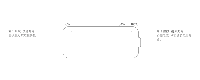 但你可能不知道,苹果产品也已经采用了快充技术,充电可以迅速达到 80% 的电量,然后转换至较慢的涓流充电。