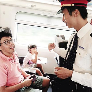 外国乘客乘坐海南环岛高铁 徐武 摄