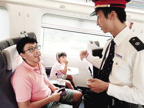 到了换班时间,海口机务运用车间动车组指导司机官献鉴从驾驶室走出来,看到站台上三五成群的外国游客兴奋地和动车合影,他微微一笑:不到一个半小时,就从海口到了三亚,“外国游客到了海南,坐上我们的车,没有不竖起大拇指的”。