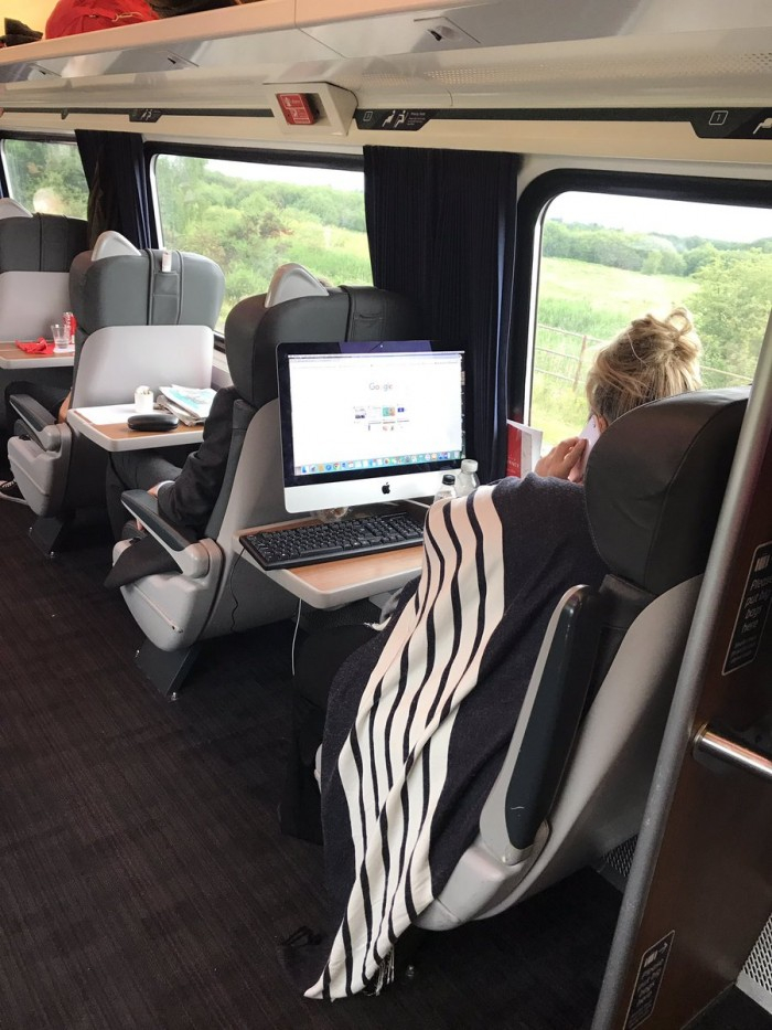 今天大多数人会在火车上使用智能手机、笔记本电脑,平板电脑进行移动办公,因为桌面电脑体积庞大,无法在火车上使用,然而下图当中iMac的女主人可能不同意这种说法。这张照片是由Dave Hill在Twitter上发布,他是VMware云服务业务部门的工作人员。来自英国的米德尔斯堡。