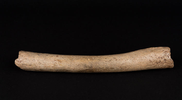 一根从德国 Hohlenstein–Stadel 洞穴中发现的尼安德特人股骨(或大腿骨)的一部分。 图片版权:Oleg Kuchar/乌尔姆博物馆(Museum Ulm)