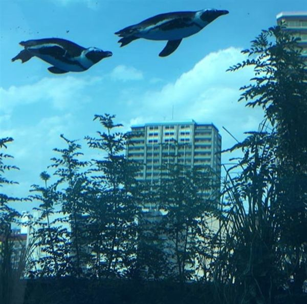 据了解,Sunshine Aquarium与一般的水族馆不同,它更像是一个户外花园,而照片中的场景就是网友从下往上拍摄的企鹅游泳的情景。