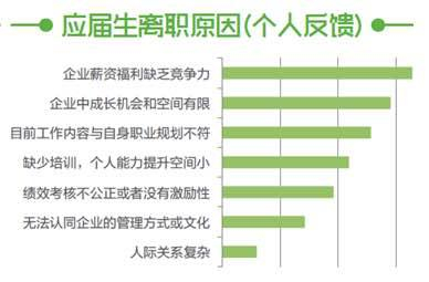 从另一个方面来看,企业也应该重视应届生离职的原因,在前程无忧最近做的一项调查中显示:应届生离职原因前三位分别是:
