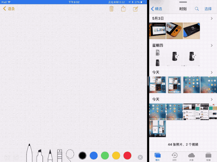 苹果在 iOS 9 中,为 iPad 加入了 Split View 和 Slide Over 两个多任务操作,前者是可以在部分 iPad 中左右分别运行一个 app,后者可以通过呼出一个「浮动窗口」的方式,在不跳出正在运行 app 的情况下快速查看其它 app 的信息。iOS 11 保留了这两个功能,不过在有了全新的 dock 栏之后,多任务的呼出方式变得直观了不少。