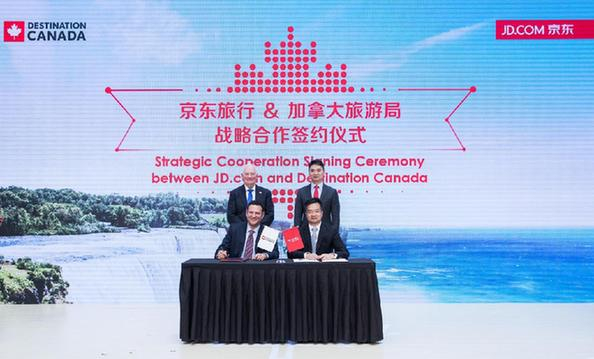 加拿大旅游局总裁兼首席执行官David F. Goldstein与京东集团副总裁、3C事业部总裁胡胜利共同签署备忘录