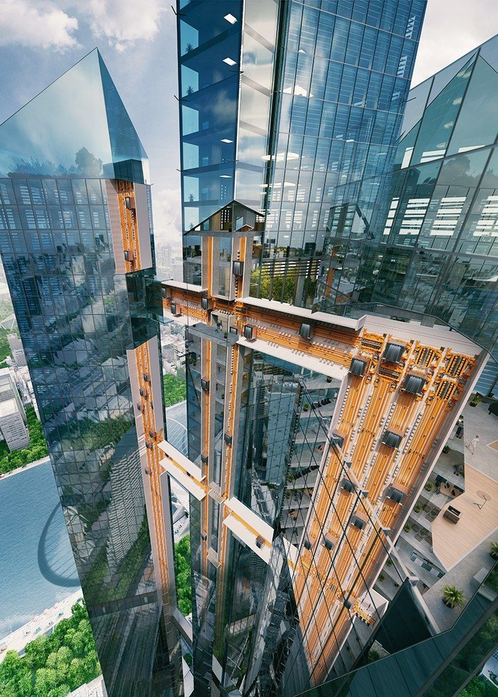 而且,传统的建筑为了能够加装电梯,一般都会在设计时考虑给大楼内留下一个电梯竖井(当然也有安装在外边的),这不仅限制了建筑的设计,也是对空间的浪费。蒂森克虏伯公司认为他们的滑轨电梯能够安装在建筑的外部,同时能够不断延伸,能够打破过去电梯对建筑的限制。