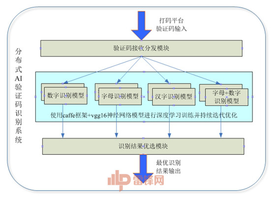 由于不同方式生成的验证码风格迥异,且经常变换,为了实现精准识别,提高准确度,“快啊答题”收集了大量不同风格的样本,并开发了验证码接收与分发模块,输入端对接打码平台,输出端根据验证码类型轮询选择并推送到相应的验证码识别模型,验证码识别完成,返回验证码字符串到打码平台,打码平台确认是否识别正确,并将结果反馈至该分布式AI验证码识别系统进行进一步优化。