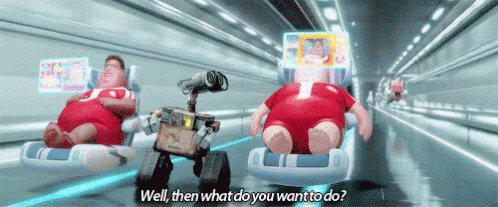 科幻动画电影《机器人总动员》中,所有的人类都堕落成完全依靠电脑的帮助才能吃喝拉撒的胖子们,不会自己走路,都有机器人伺候。虽然因为地方小大家离的都很近,但是人们每天的生活主要是坐着看电视购物频道,以及打电话。互相之间也没有什么感情交流。所有人都是经济学家设定的理性人,从小接受的电脑教育就是要消费消费再快点消费。