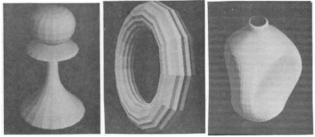 这三张3D渲染图来自于纽维尔1972年发表的论文中。在犹他茶壶出现前,国际象棋的棋子、甜甜圈和瓮是3D渲染的主要习作。图片来源:国际计算机协会