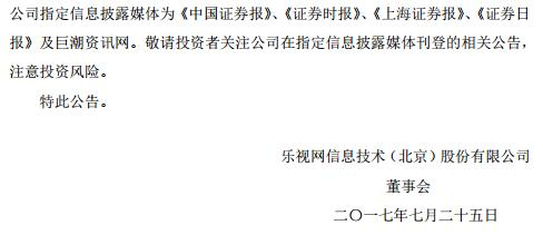 乐视网发布重大资产重组停牌期间进展公告