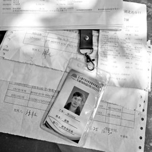 小涂的工牌、银行流水和签过字的物料单 记者石伟 摄