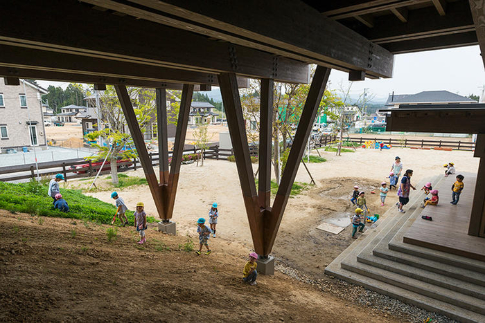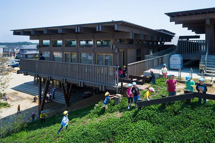 位于日本宫城县南三陆町的朝日幼儿园,曾在 2011 年的东日本大地震中被毁。2012 年,经由建筑师手冢贵晴的改造,在联合国儿童基金会的支持下,这个幼儿园得以重生。