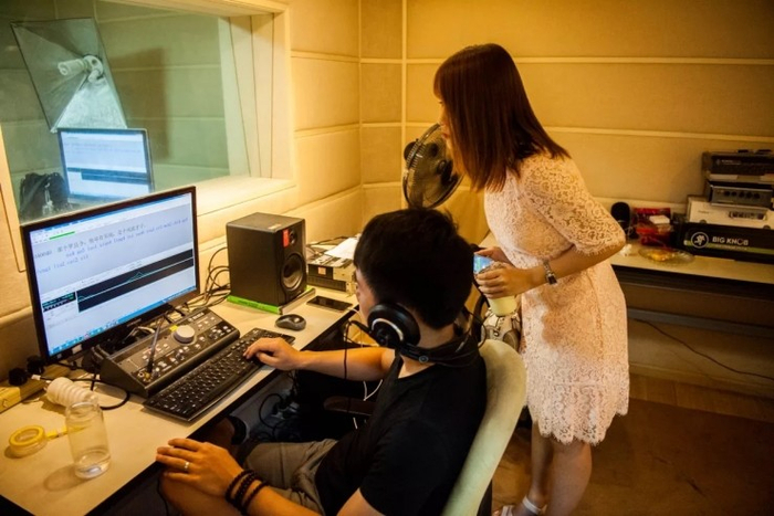 (钰莹和录音师交流)
