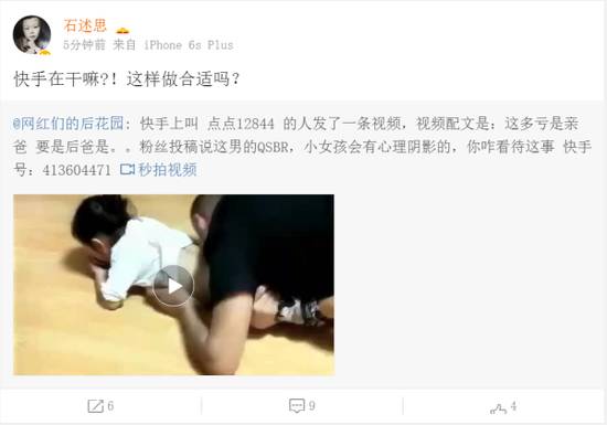 1、快手回应父亲猥亵小女孩视频:已因有争议行为作处理