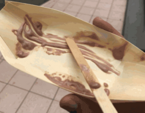 冰淇淋是用从草莓中提取的多酚液体制成的,这显然使冰淇淋中的水和油更难分离,可以让冰棍有更长时间来保持形状。博主下定决心要测试一下,于是就在东京的Kanazawa Ice店铺买了一个巧克力味的冰淇淋。