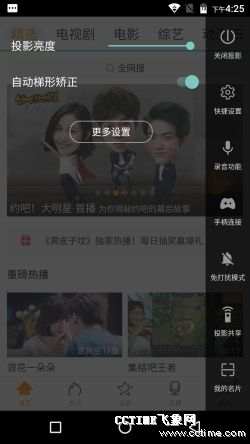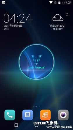 青橙VOGA V投影功能操作起来也很简单,主屏中间最醒目位置就是启动激光投影的圆形快捷按键。当打开投影后,圆形快捷按键会出现投影内容选项,包括文档、图片、视频、游戏等。