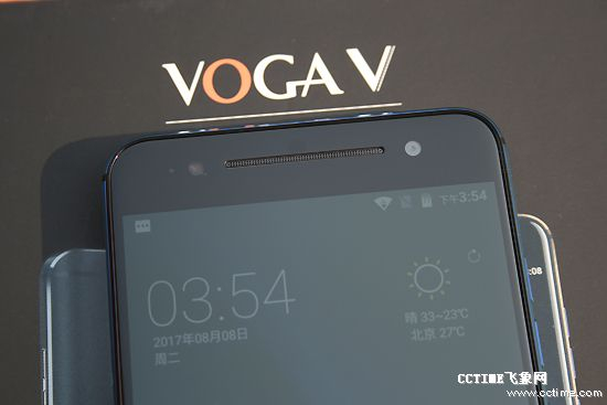 在机身结构方面,青橙VOGA V在屏幕上方集成了柔光灯、听筒、光线距离感应器以及前置摄像头。