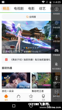功能设置上,手机边框处会出现一个“+”号图标,点击会在右侧边框出现关闭投影、快捷设置、录音、手柄连接、免打扰、投影共享、名片摄制等功能。关闭投影后则会消失。
