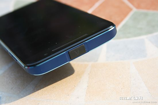底部没有设置按键,而是采用了屏幕内虚拟按键的设置,并且将指纹放在了背部。