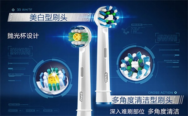 这款牙刷最大的亮点在于它的刷头设计。从整体上看,小圆头刷头萌态十足,将蓝色刷柄衬托得很苗条。美白型刷头采用抛光杯设计,让美白牙齿变得更简单便捷,而多角度清洁型刷头可以深入多个口腔难刷部分,进行多角度清洁,清洁力度强。