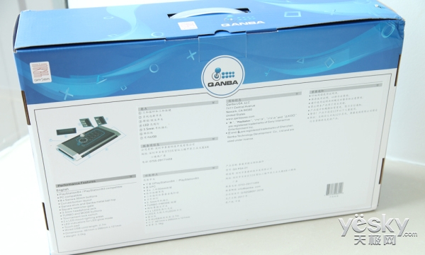 这次的拳霸Q3黑曜石获得了索尼官方的授权,所以在包装风格上也参考了一些索尼PS4主机的包装风格。包装正面印有产品的样式图,可以很直观地看到这款拳霸Q3黑曜石的全貌。