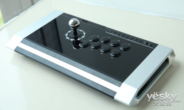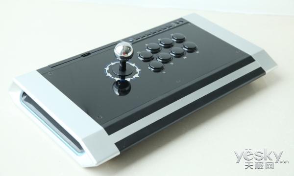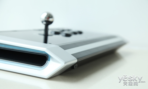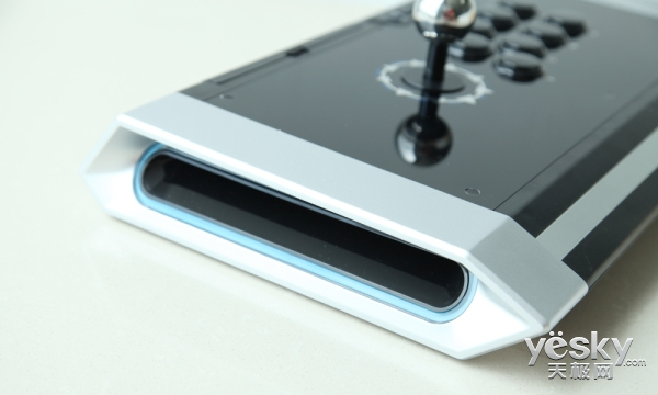 机身左右两边为内凹式设计,原因不仅是为了美观,更是因为这两个部位为拳霸Q3黑曜石的装饰灯部分,作为一款次时代格斗摇杆产品,装饰灯设计相比以往有着更多的变化。