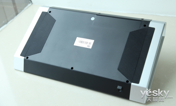 拳霸Q3黑曜石的机身背部分为三部分,从左到右依次为触摸板,拳霸品牌图腾和线缆收纳盒。