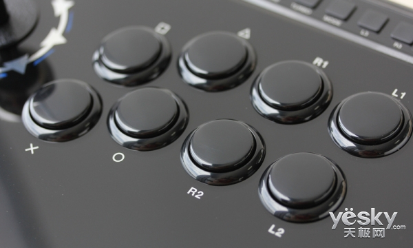 拳霸Q3黑曜石的按键采用了更为专业的弧形键位排列,更好地适应人体工学。八键的标准配置可以适应所有游戏需求,并且根据自身习惯喜好自行调整按键位置。所有按键采用统一键帽,并对应PS手柄按键做了标注。