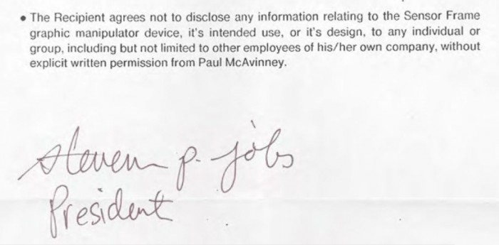 然后,史蒂夫·乔布斯还在卡内基梅隆大学的多点触控 NDA(保密协议) 上签名。