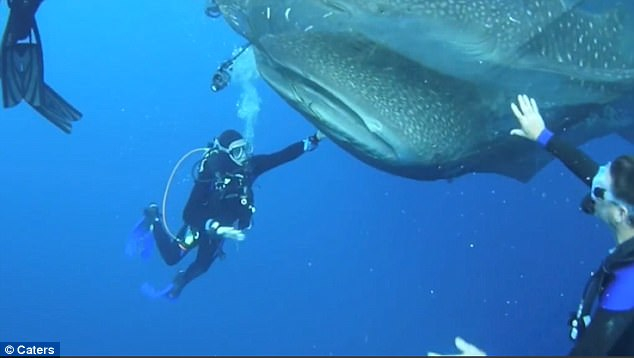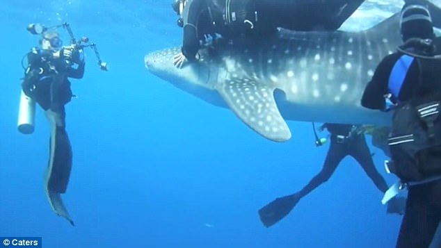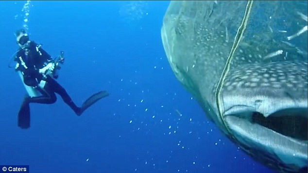 那天,潜水员们靠近渔船,把渔网打开了一点,然后把鲸鲨推了上来,帮助解救了鲸鲨并保住了渔民整晚的渔获。